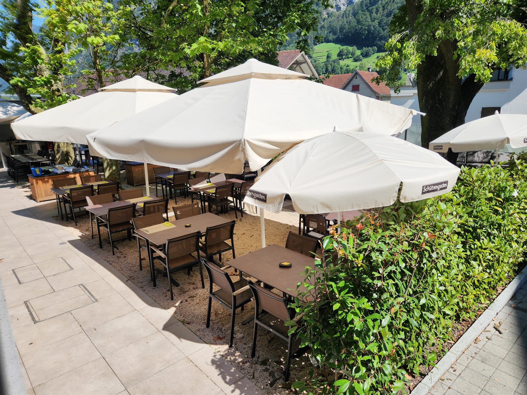 Entspannen, genießen und die Natur spüren – unsere sonnige Gartenterrasse bietet den perfekten Rahmen für unvergessliche Momente mit köstlichen Grillgerichten und herzlicher Gastfreundschaft.