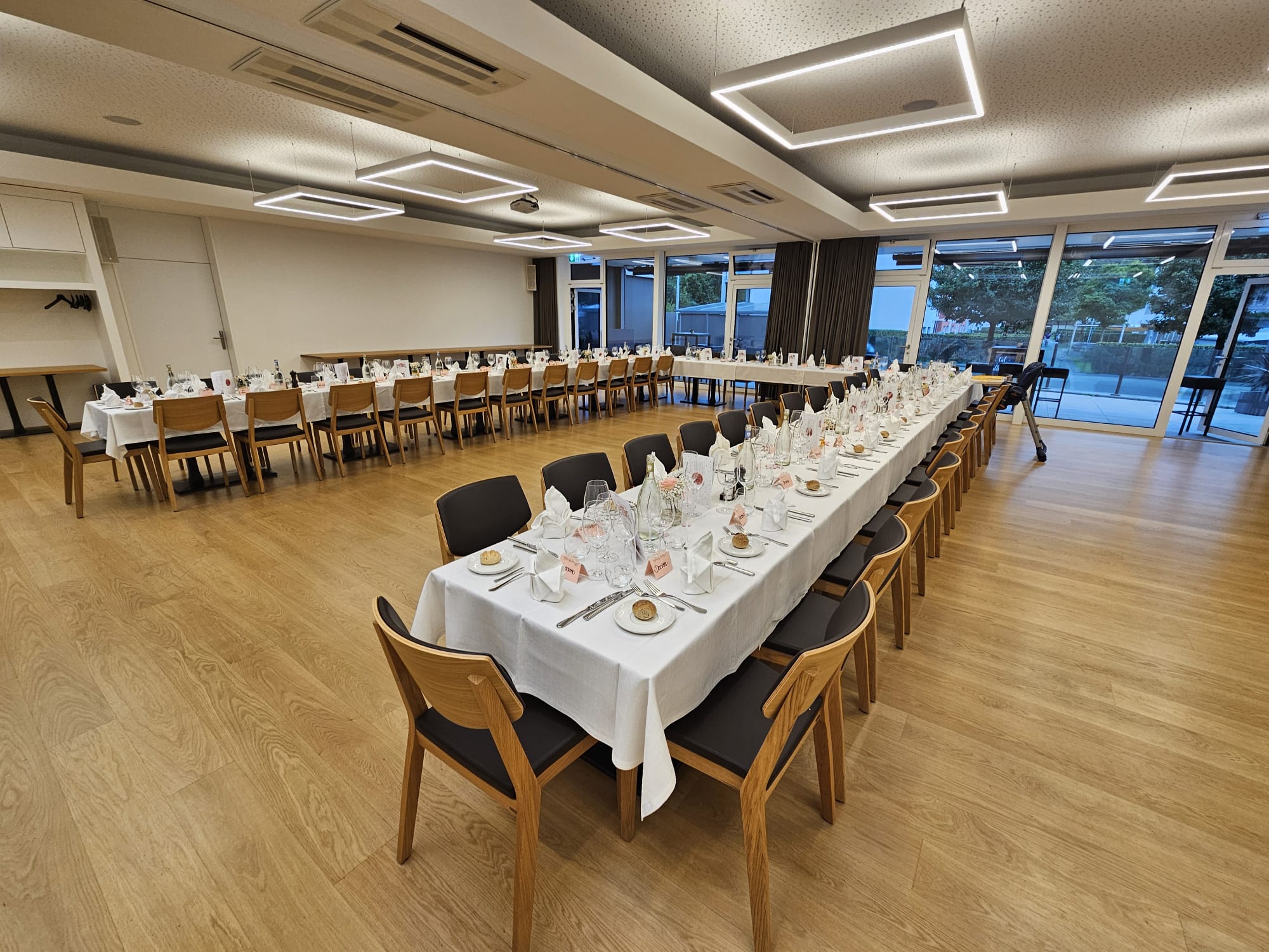 Mit bis zu 120 Sitzplätzen wird Ihre Feier oder Ihr Fest zum Erfolg. Egal ob Familientreff, Geburtstagsfeier, Vereins-Anlass, Jahrgängertreffen, Hochzeiten, Firmenessen oder Weihnachtsfeiern, unser Saal bietet für jeglichen Anlass den optimalen Raum.